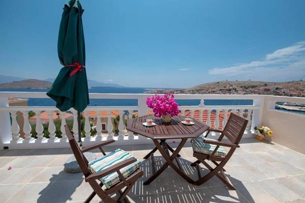 Perched above the harbour on the island of Chalki, Filoxenia Apartments is a bright, airy hideaway made for travellers who want postcard views with everyday comfort. The standout is the huge private terrace, set high above the marina an unbeatable spot for sunrise breakfasts, lazy afternoons, or watching the boats glide in and out of the bay (on clear days you can even see across to Rhodes).